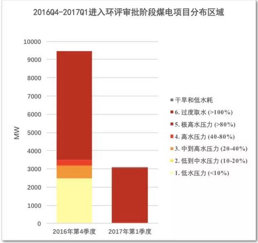 進入環(huán)評審批階段的煤電項目中,超過70%的項目位于“過度取水”區(qū),超過75%的項目位于高水壓力地區(qū)。2017年第一季度更是幾乎全部進入環(huán)評審批階段的煤電項目均分布在過度取水區(qū)。