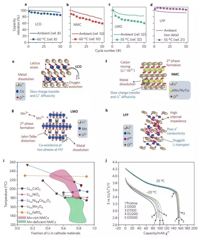 圖2. 常見正極材料在不同溫度下的性能