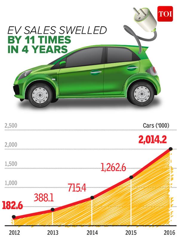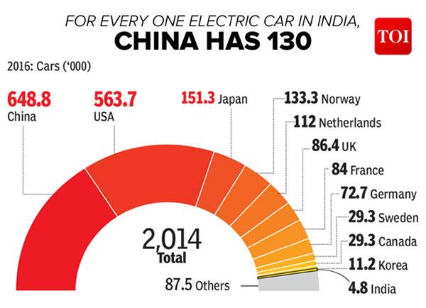 印度雖然是全球主要的汽車市場(chǎng),但其2016年的電動(dòng)汽車銷量卻遠(yuǎn)遠(yuǎn)落后。2016年全球汽車銷量為201.42萬輛,相比于2012年的18.26萬輛,增長(zhǎng)11倍。其中,印度電動(dòng)汽車銷量為4800輛,日本為15.13萬輛,美國(guó)為56.37萬輛,中國(guó)則為64.88萬輛。