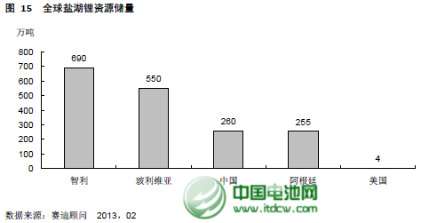 中國鋰資源儲量相對較為豐富,僅次于智利、美國。其中約80%為鹽湖鹵水鋰礦,主要分布于青海和西藏的鹽湖中。