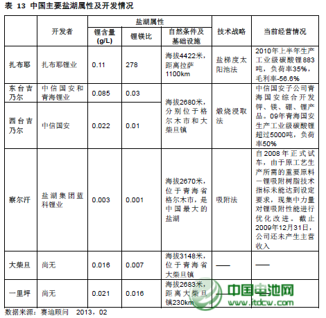 目前已開始進(jìn)入鹽湖鹵水提鋰開發(fā)領(lǐng)域的有西藏扎布耶鹽湖和青海東、西臺吉乃爾鹽湖。西藏扎布耶鹽湖是世界上三個鋰資源超百萬噸的超大型鹽湖之一,其特點是鎂鋰比例很低,容易分離提取碳酸鋰,但自然環(huán)境惡劣,海拔高,基礎(chǔ)設(shè)施極差,開采難度很大。其他鹽湖則普遍存在鎂鋰比例高,分離難度大,開采條件較為惡劣的問題。到目前為止,我國鹽湖鹵水鋰礦的開發(fā)還處于初級階段。