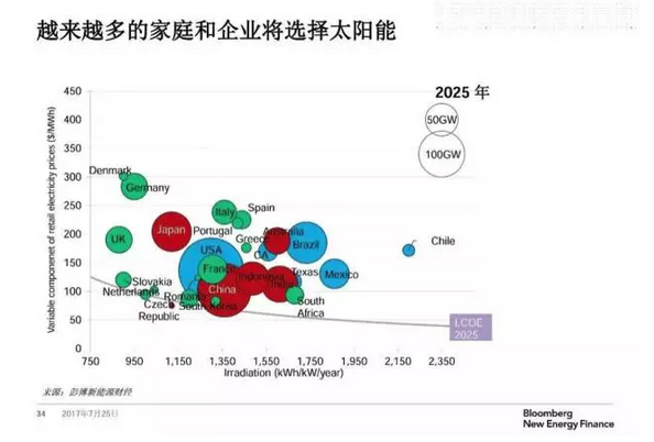 彭博分析師表示,“工商業(yè)、家庭屋頂?shù)确植际焦夥l(fā)電潛力非常巨大,小規(guī)模光伏發(fā)電未來(lái)20年將增長(zhǎng)30%左右”。