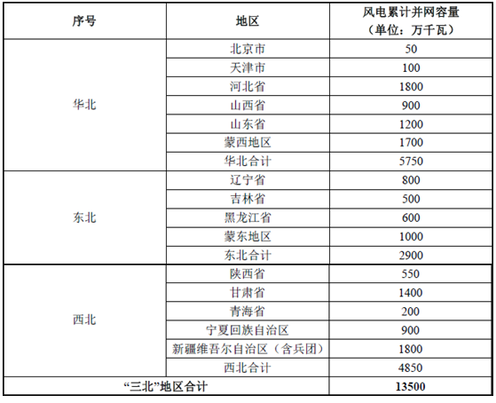 2020 年“三北”地區(qū)陸上風(fēng)電發(fā)展目標(biāo)如下: