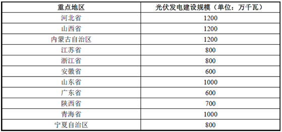 重點(diǎn)地區(qū)2020 年光伏發(fā)電建設(shè)規(guī)模如下: