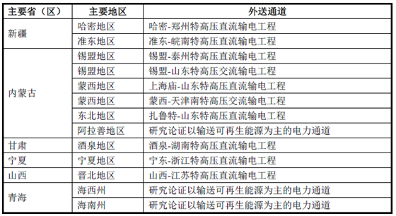 電力外送通道配置太陽能發(fā)電基地布局情況如下: