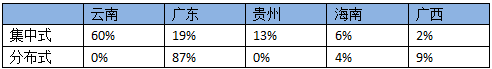 從發(fā)電類型看,云南等西部省份以集中式光伏電站為主,分布式發(fā)光發(fā)電絕大部分集中在廣東省內,占比高達87%。廣東分布式光伏主要集中在珠三角地區(qū)。