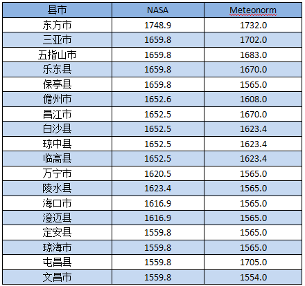 表5:海南省各地水平面年輻照總量一覽表