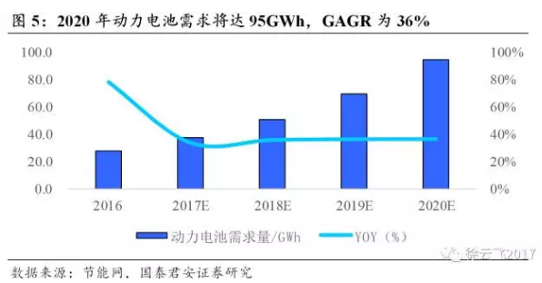 動力領(lǐng)域需求高速增長,軟包滲透率加速提升。2016年軟包在動力領(lǐng)域的滲透率較低,預(yù)計約為12%,但自從去年新能源汽車推廣政策與能量密度聯(lián)動后,在2020年電池單體能量密度350wh/kg,系統(tǒng)能量密度260wh/kg的指引下,軟包電池作為當(dāng)前性能最高的動力電池,卓越性能在動力領(lǐng)域的認(rèn)可度不斷提升,我們預(yù)計至2020年軟包在動力領(lǐng)域的滲透率將達(dá)32%左右,其中軟包電池需求量為30GWh,GAGR為75%,軟包的需求量增速將超過動力鋰電池的增速。