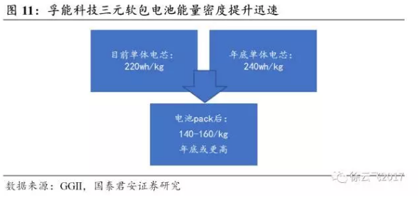 單體及系統(tǒng)能量密度提升37%以上。軟包鋰電的能量密度提高可通過自身優(yōu)異的物理特性而提高,一是由于采用鋁塑膜后減少了結(jié)構(gòu)件的應(yīng)用,軟包電池較同等容量的鋼殼鋰電池質(zhì)量減輕最大可達(dá)40%,較鋁殼鋰電池質(zhì)量可輕約20%。二是因為軟包設(shè)計的形狀容易改變,可根據(jù)實際的需要進(jìn)行定制從而提高空間利用率。目前孚能科技的軟包電池單體能量密度達(dá)到220wh/kg,系統(tǒng)能量密度在140-160wh/kg之間,其能量密度遠(yuǎn)高于采用相同材料體系的動力鋰電池。