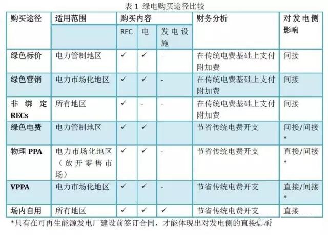 表1總結(jié)了以上六種綠電購(gòu)買途徑的異同。
