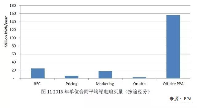 根據(jù)EPA的最新數(shù)據(jù),截止至2016年,非綁定RECs仍是自愿綠電市場(chǎng)上用戶獲得REC的最主要途徑,但PPA的分量正逐年遞增,且平均每份PPA合同所簽訂的購(gòu)買電量遠(yuǎn)遠(yuǎn)高于其他幾種購(gòu)買途徑。
