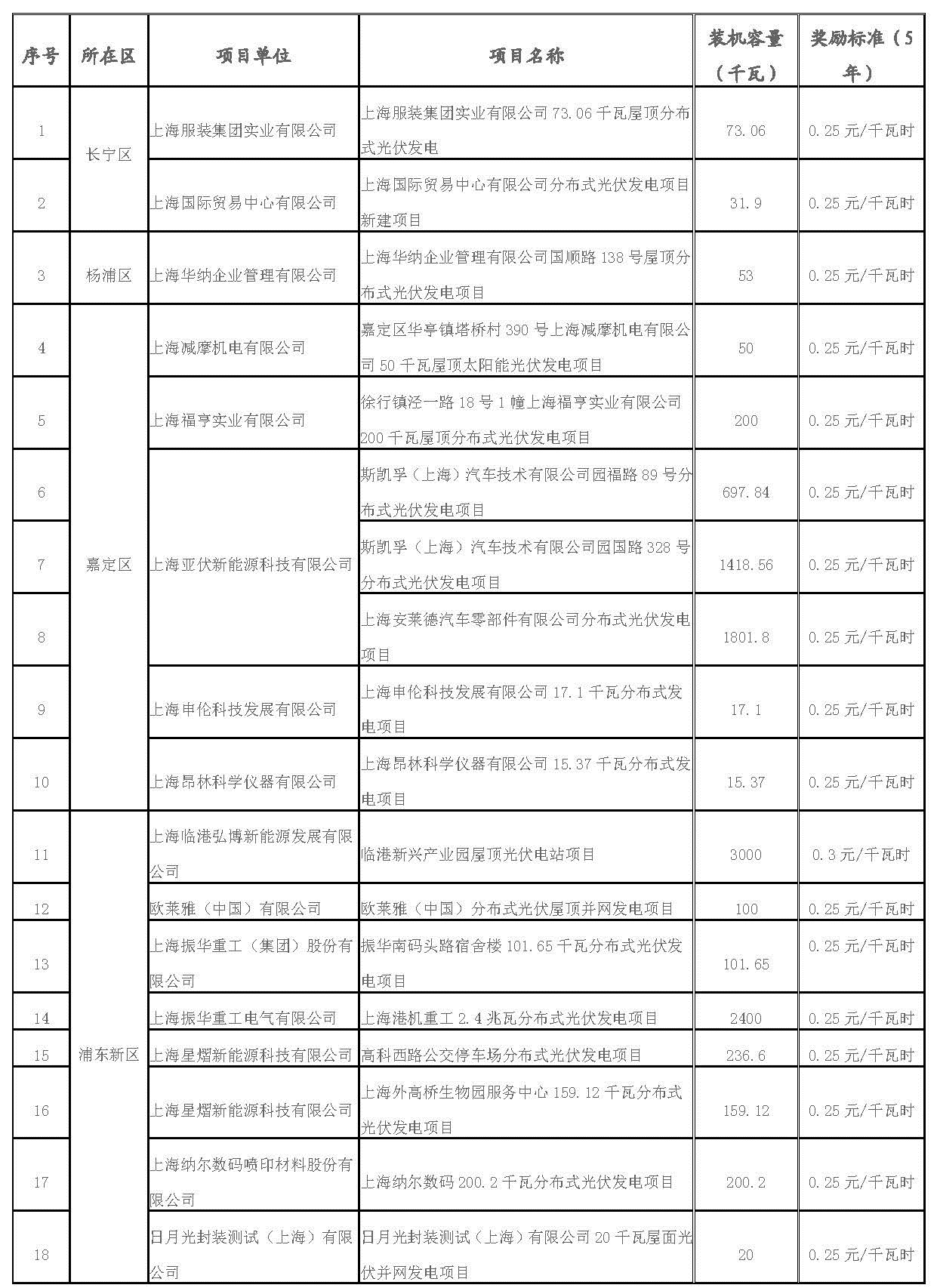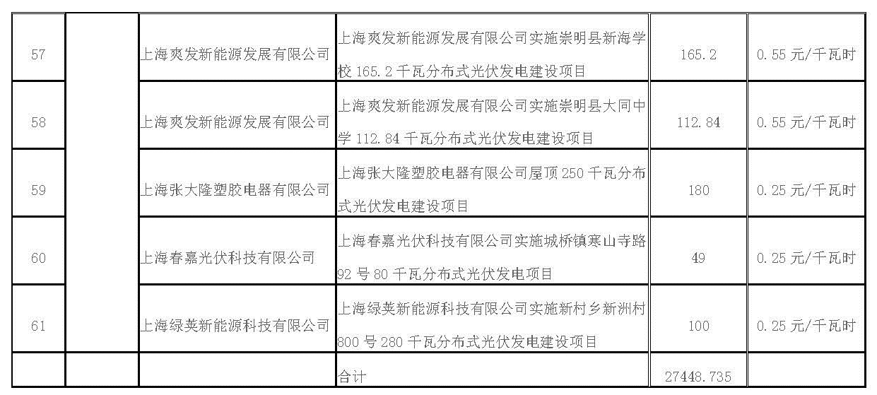根據(jù)《上海市可再生能源和新能源發(fā)展專項(xiàng)資金扶持辦法》(滬發(fā)改能源〔2016〕136號(hào)),市發(fā)展改革委會(huì)同相關(guān)部門和單位,組織開展了2017年第一批可再生能源和新能源發(fā)展專項(xiàng)資金扶持項(xiàng)目的申報(bào)和評(píng)審工作。在專家評(píng)審意見的基礎(chǔ)上,經(jīng)審核,上海服裝集團(tuán)實(shí)業(yè)有限公司73.06千瓦屋頂分布式光伏發(fā)電項(xiàng)目等61個(gè)光伏項(xiàng)目(共27448.735千瓦)和1313戶個(gè)人光伏(共8179.206千瓦)符合條件,列入市可再生能源和新能源發(fā)展專項(xiàng)資金獎(jiǎng)勵(lì)目錄予以支持(詳見附件)。