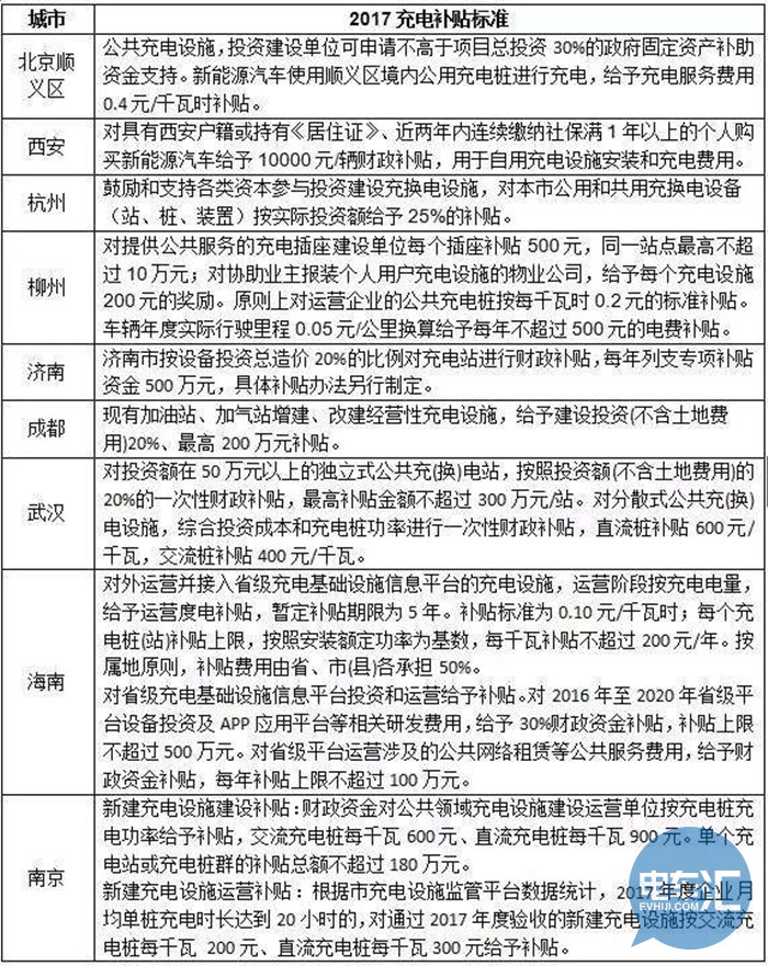 根據(jù)國家充電政策要求,多地出臺了充電相關(guān)規(guī)劃、實施細則、管理辦法、補貼和充電標準。據(jù)統(tǒng)計,西安、杭州、成都、武漢等13個省市明確了充電基礎(chǔ)設(shè)施補貼標準。