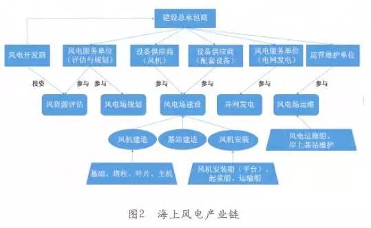 海上風(fēng)能利用的不斷增加也必將帶動(dòng)產(chǎn)業(yè)鏈內(nèi)的各相關(guān)行業(yè)發(fā)展。海上風(fēng)電產(chǎn)業(yè)的運(yùn)行,以海上風(fēng)電投資企業(yè)為主導(dǎo)和驅(qū)動(dòng)力,其總投資量在很大程度上決定了風(fēng)電項(xiàng)目的規(guī)模和相關(guān)企業(yè)的獲利大?。灰院I巷L(fēng)電設(shè)備制造業(yè)為硬件供應(yīng),廣義上的風(fēng)電設(shè)備供應(yīng)應(yīng)當(dāng)包括風(fēng)機(jī)整機(jī)供應(yīng)和相關(guān)海上風(fēng)電工程裝備供應(yīng)??傮w來(lái)說(shuō),海上風(fēng)電產(chǎn)業(yè)鏈的運(yùn)行主線為:風(fēng)資源評(píng)估—風(fēng)電場(chǎng)規(guī)劃—風(fēng)電場(chǎng)建設(shè)—并網(wǎng)發(fā)電—風(fēng)電場(chǎng)運(yùn)維。