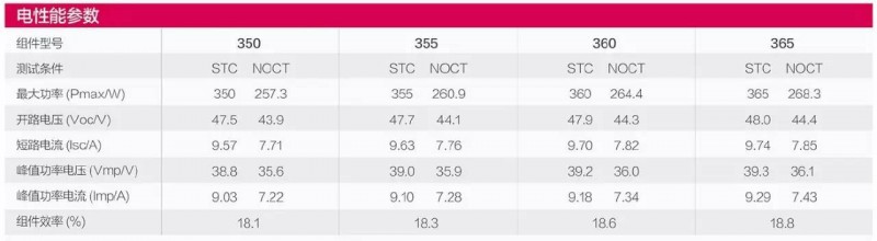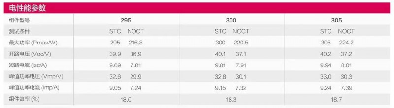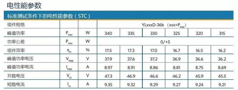 圖4:某廠家單晶硅72片組件電性能參數(shù)表