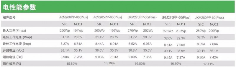 圖5:某廠家多晶硅60片組件電性能參數(shù)表