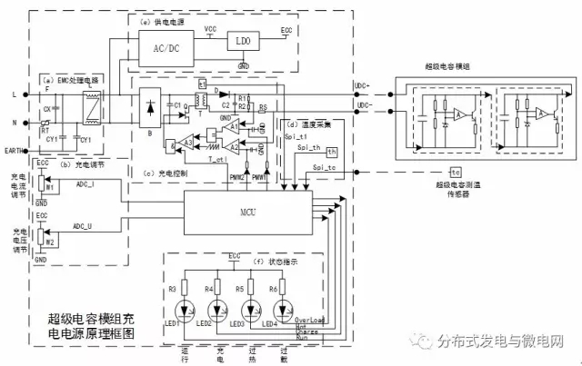 其功能:1)針對目前各種超級電容模組對充電電壓,充電電流的不同需求問題,采用先恒流后恒壓的方式對超級電容模組進行充電,且充電電流和充電電壓可調(diào)節(jié);2)該充電電源及其控制方法可以提供對超級電容的熱保護,在充電過程中通過溫度傳感器監(jiān)測超級電容模組的絕對溫度和溫升情況,如果超級電容模組的絕對溫度過高或溫升過高,則會自動關(guān)斷充電過程。