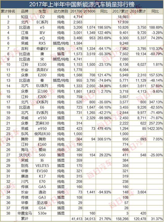 根據(jù)乘聯(lián)會數(shù)據(jù),6月新能源汽車銷量41,413輛,環(huán)比增長9%,同比增長21.76%。上半年新能源累計銷量158,266輛,同比增長31.37%。銷量基數(shù)增長不大,且增速明顯放緩。