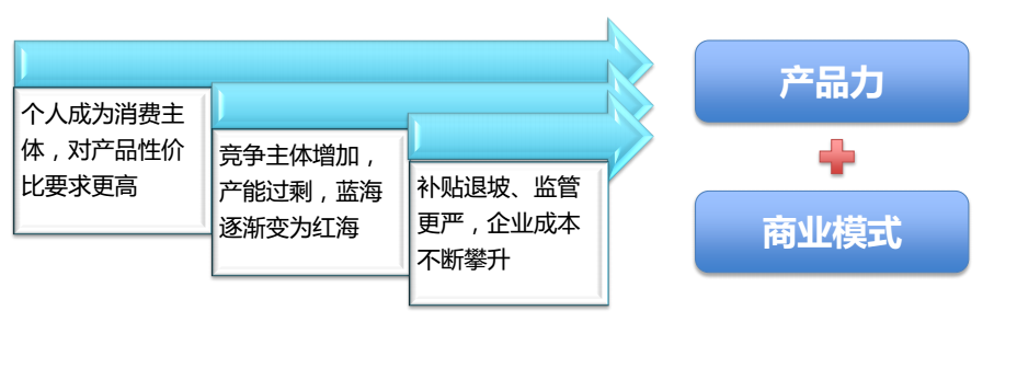 對于未來的新能源企業(yè)的核心競爭力應(yīng)該是兩大塊,一塊是產(chǎn)品力,因為新能源汽車整車首先向所有的客戶提供的是一個產(chǎn)品,它是一個交通工具。但是,和傳統(tǒng)的汽車行業(yè)的從業(yè)者比起來,有上百年的積累,對于新能源行業(yè)的從業(yè)者來說,很難在短短的5年到10年內(nèi)完成別人用100年甚至更長時間完成所做的工作,所以未來新能源行業(yè)發(fā)展應(yīng)該是產(chǎn)品技術(shù)的創(chuàng)新和商業(yè)模式的創(chuàng)新相結(jié)合,向客戶提供一個更完美、更便捷、成本更低、性價比更高的一個綜合的出行方案。要解決客戶的痛點,對產(chǎn)品的性價比要求更高,要解決企業(yè)面臨的現(xiàn)金流、成本包括市場售后服務(wù)各項壓力。但是如何去解決,那就是要找出如何把產(chǎn)品和商業(yè)模式結(jié)合,充分發(fā)揮產(chǎn)品的優(yōu)勢解決客戶的問題,同時利用商業(yè)模式的創(chuàng)新,降低由于新能源產(chǎn)品成本偏高帶來的困境。