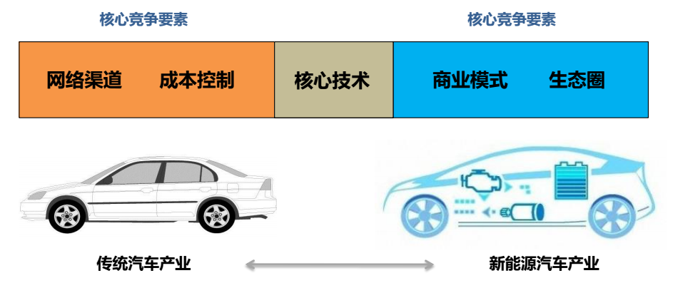 在傳統(tǒng)車的概念中,網(wǎng)絡(luò)、渠道、成本和技術(shù)是最大的核心競爭力,但是新能源產(chǎn)業(yè)中,傳統(tǒng)車所需求的技術(shù)、渠道,要增加商業(yè)模式和生態(tài)圈,構(gòu)建出一個完整的閉環(huán)系統(tǒng),這也是未來所有新能源整車企業(yè)都要采用的應(yīng)對方案。
