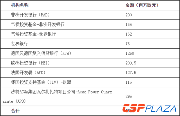 摩洛哥2009年宣布的2000MW太陽能項目所需資金巨大,約需90億美元,完全憑借摩本身財力難以承擔(dān)。據(jù)沙特ACWA集團(tuán)披露,其中標(biāo)的正在實施中的瓦爾扎扎特太陽能二期和三期項目資金構(gòu)成為80%的債務(wù)和20%的自有資金。其中債務(wù)由摩洛哥太陽能署承擔(dān),國際開發(fā)機構(gòu)對其提供融資支持。