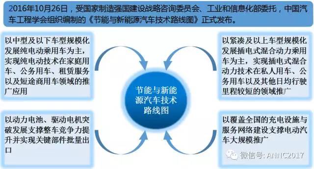 2016年10月26日,《節(jié)能與新能源汽車技術(shù)路線圖》正式發(fā)布,我國新能源汽車發(fā)展主要是以中型及以下車型規(guī)?;l(fā)展純電動乘用車為主,實現(xiàn)純電動技術(shù)在家庭用車、公務(wù)用車、租賃服務(wù)以及短途商用車領(lǐng)域的推廣應(yīng)用,同時建設(shè)覆蓋全國的充電設(shè)施,來支撐電動汽車的大規(guī)模發(fā)展。