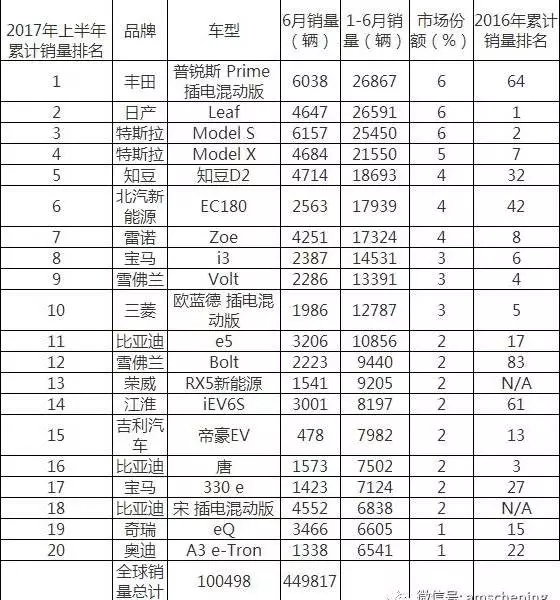 全球電動車2017上半年銷量前20車型排名數(shù)據(jù)顯示,中國企業(yè)占據(jù)電動車市場的半壁江山,共有9款中國品牌車型入圍。知豆D2仍然排在國產(chǎn)電動車銷量首位,上半年累計交付18693輛。而比亞迪有三款車型進入TOP20,同樣受到外媒看好,其6月月銷量達11198輛,分析預測比亞迪的月銷量在年底將會達到2萬輛。