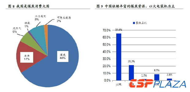 多煤貧油少氣決定了中國以火電裝機(jī)為主。①中國的煤炭資源豐富,據(jù)《世界能源統(tǒng)計(jì)回顧2015》數(shù)據(jù)顯示,中國能源消費(fèi)結(jié)構(gòu)中煤炭占比高達(dá)66%,約為天然氣和石油消費(fèi)總量的兩倍。②依托于中國豐富的煤炭資源,發(fā)電裝機(jī)結(jié)構(gòu)中火電占據(jù)主導(dǎo)地位。