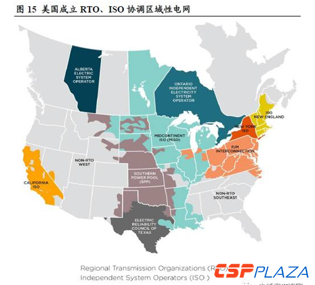 美國電網(wǎng)建設(shè)之初便是分散破碎的。①美國作為世界上最先廣泛使用電力的國家,在資本主義私有制的經(jīng)濟(jì)體制下,其電力產(chǎn)業(yè)在自由市場中從無到有逐漸發(fā)展起來。基于這樣的歷史背景,美國的電力產(chǎn)業(yè)結(jié)構(gòu)非常復(fù)雜,尤其是電網(wǎng)的產(chǎn)權(quán)結(jié)構(gòu)支離破碎,分散掌握在超過五百家的公司與組織手中。再加上電力產(chǎn)業(yè)的自然壟斷性質(zhì),每一家電力公司都是當(dāng)?shù)氐男袠I(yè)壟斷者。②而美國憲法高度重視對私有財(cái)產(chǎn)權(quán)的保護(hù),不能隨意干涉電力公司的經(jīng)營,因此只能協(xié)商、呼吁鄰近區(qū)域的電力公司聯(lián)合成立電網(wǎng)調(diào)度組織RTO(Regional Transmission Organization)或者ISO(Independent System Operator)。