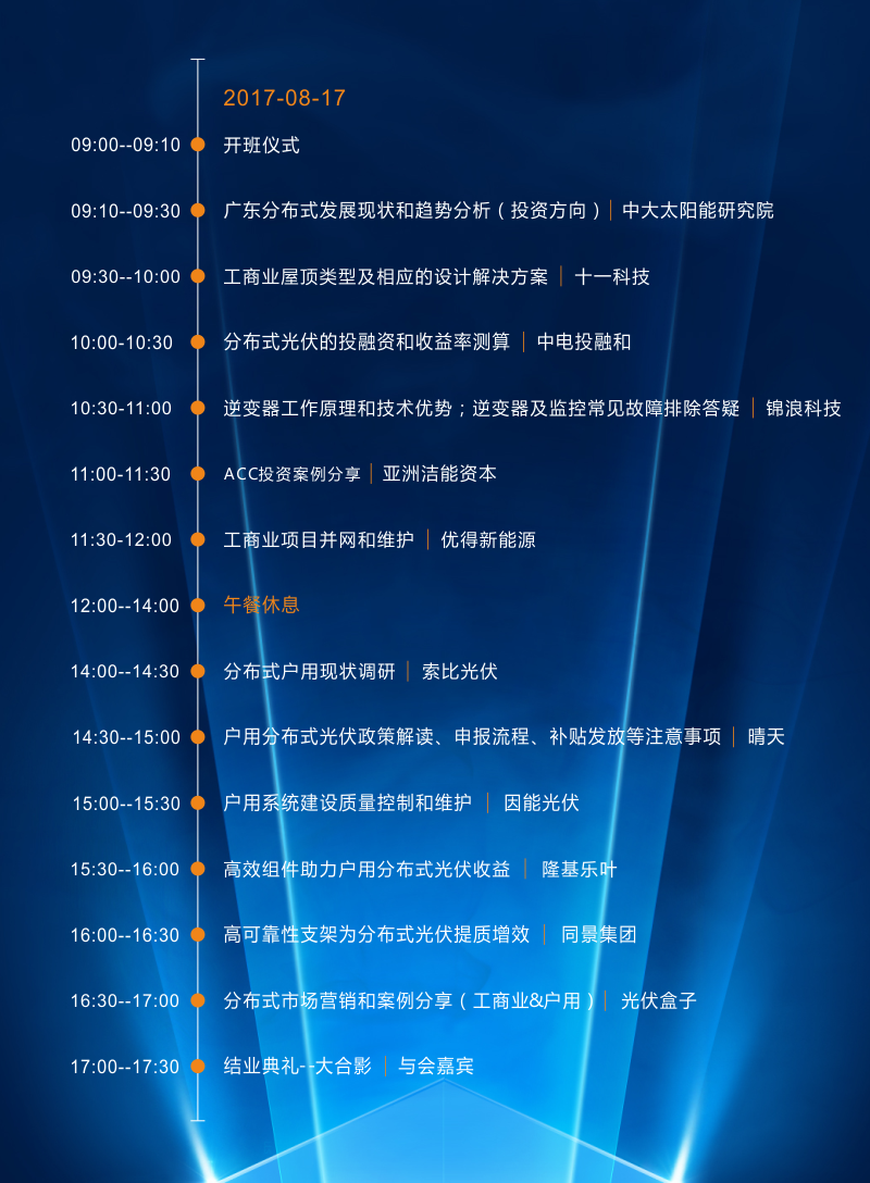 錦浪科技《藍天實驗者》高能會的會議議程華麗出爐,大咖嘉賓陣容、理性探討環(huán)節(jié)設計,全方位討論目前分布式光伏、工商業(yè)屋頂、戶用光伏市場的趨勢和變化,為光伏行業(yè)發(fā)展提供新的思路和想法!
