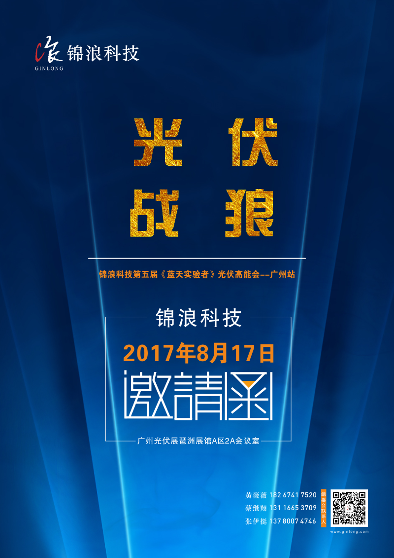 2017年8月17日,廣州光伏展琶洲展館A區(qū)2A會議室,由錦浪科技主辦的《藍天實驗者》第五屆光伏高能會--廣州站將會一一給出答案。
