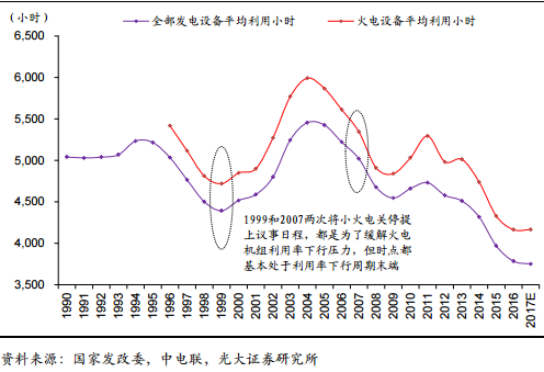 2014-2016年,火電機組利用小時連續(xù)三年大幅下滑,2016年已經跌至建國以來的歷史低位4160小時;