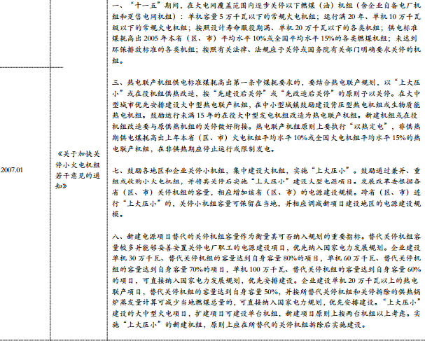 2007年1月,國務院批轉發(fā)展改革委、能源辦《關于加快關停小火電機組若干意見的通知》,為實現(xiàn)“十一五”規(guī)劃綱要提出的單位國內生產總值能源消耗降低和主要污染物排放總量減少目標,推進電力工業(yè)結構調整,針對加快關停小火電機組工作提出24項工作意見。最終,“十一五”期間,全國上大壓小、關停小火電機組7682.5萬千瓦,遠超5000萬千瓦的關停目標。