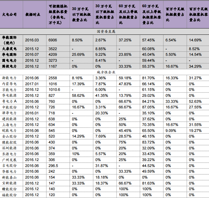 4.2、機組質量較高的上市公司將受益于行業(yè)供給側改革