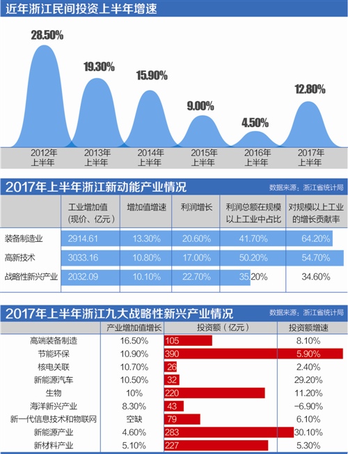 根據(jù)浙江省公布的經(jīng)濟(jì)半年數(shù)據(jù),上半年民間投資增速達(dá)12.8%,比去年同期提高8.3個(gè)百分點(diǎn);民間投資在整個(gè)固定資產(chǎn)投資中的比重也提高了幾個(gè)百分點(diǎn)。