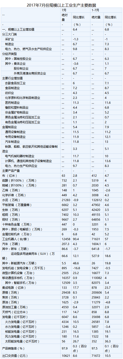 中國儲能網(wǎng)訊:據(jù)國家統(tǒng)計局最新數(shù)據(jù)顯示,2017年7月規(guī)模以上工業(yè)增加值同比實際增長6.4%(以下增加值增速均為扣除價格因素的實際增長率)。1-7月份,規(guī)模以上工業(yè)增加值同比增長6.8%。其中,2017年7月份我國太陽能發(fā)電量56億千瓦時,同比增長26.7%。1-7月份,我國太陽能發(fā)電量共計352億千瓦時,同比增長36.3%。