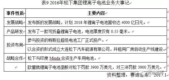 三星SDI是三星集團(tuán)旗下子公司。1998年涉足鋰離子電池領(lǐng)域,推出鋰離子電池產(chǎn)品;2004年研發(fā)出鋰離子聚合物電池。得益于三星集團(tuán)在IT終端產(chǎn)品領(lǐng)域的強(qiáng)勢(shì)發(fā)展,三星SDI的鋰離子電池產(chǎn)量迅猛增長(zhǎng),成為全球鋰離子電池產(chǎn)業(yè)的領(lǐng)軍企業(yè)。2016年SDI進(jìn)行戰(zhàn)略重組,剝離化工業(yè)務(wù),專注于鋰離子電池。受三星Note 7電池爆炸事件影響,2016年下半年三星SDI鋰離子電池業(yè)務(wù)收入出現(xiàn)顯著下滑,尤其是小型鋰離子電池占比持續(xù)下降,到2016年年底小型鋰離子電池占比不到70%,而2016年年初還高達(dá)80%。截至2016年12月31日,LG Chem在韓國(guó)證券交易所的收盤價(jià)為265000韓元/股,其市值約為19.6萬(wàn)億韓元,較2015年同期下降了20%。截止2016年12月31日,三星SDI在韓國(guó)證券交易所的收盤價(jià)為109000韓元/股,其市值約為7.7萬(wàn)億韓元。