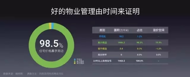 而根據(jù)搜房網(wǎng)統(tǒng)計,萬科持有的10年以上商用住宅中,價格高于周邊的占98.5%,低于周邊的只有0.3%,溢價空間平均達到19.9%。
