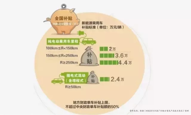 2016年12月28日,財政部、科技部、工信部、國家發(fā)改委聯(lián)合發(fā)布全新的新能源汽車推廣應(yīng)用補(bǔ)貼政策。2017年新政策在2016年標(biāo)準(zhǔn)上退坡20%,同時規(guī)定地方財政對單車的補(bǔ)貼上限不得超過中央財政單車補(bǔ)貼額的50%。