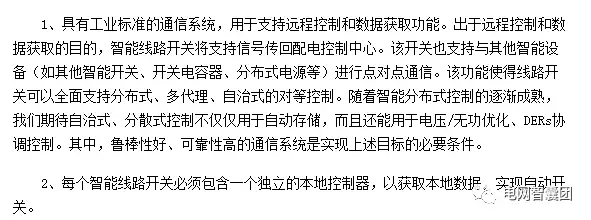智能配電網中包含了大量分布在配電網饋線重要位置上的智能線路開關。這些智能開關將支持配電網實現“自愈”功能。同時,它也支持饋線終端實現滿足分布式發(fā)電與負荷平衡需求的最優(yōu)網架重構。智能開關具有如下主要特征: