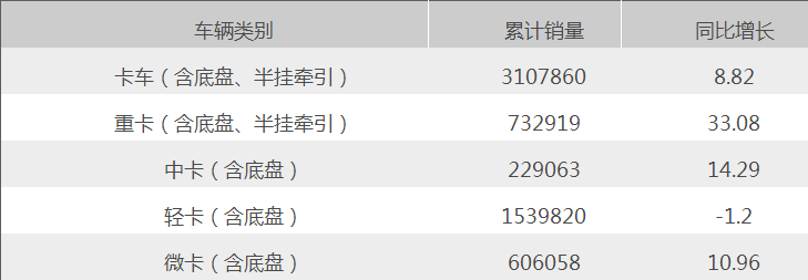 來自中國汽車工業(yè)協(xié)會(huì)統(tǒng)計(jì),2016年1~12月份,我國卡車(含底盤、半掛牽引車)完成銷量310.79萬輛,同比增長8.82%。細(xì)分卡車市場同比,重卡、中卡、微卡均實(shí)現(xiàn)10%以上的2位數(shù)增長,輕卡下降1.2%。