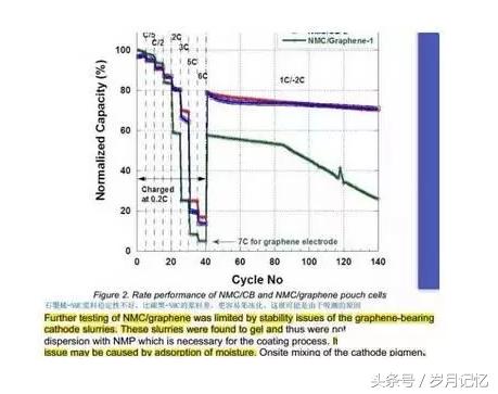 關(guān)于石墨烯對于調(diào)漿實(shí)際工藝的影響,有Oak Ridge NaTIonal Laboratory與Vorbeck(有名的石墨烯業(yè)內(nèi)廠商)的披露的研究成果,他們發(fā)現(xiàn)石墨烯對于漿料的工藝的性能有很消極的影響,如下圖所示: