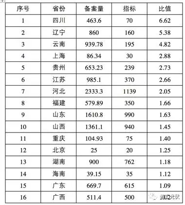 表2:各省光伏的備案量、指標與比值