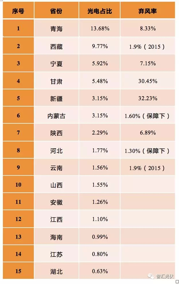 說明:西藏、云南采用了2015年的數(shù)據(jù),河北、內蒙為在保障小時下的棄光率。