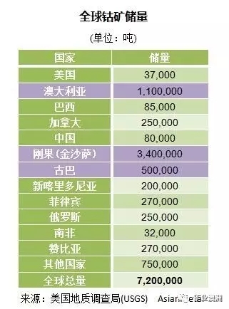 據美國地質調查局2015年最新統(tǒng)計,全球已探明陸地鈷資源量約2500萬噸,儲量720萬噸,儲量高度集中在剛果(金),澳大利亞和古巴。世界鈷資源的分布很不平衡,剛果(金)、澳大利亞和古巴三國儲量之和就占了全球總儲量的68%。剛果(金)是鈷儲量最豐富的國家,截至2014年,該國鈷儲量達到340萬噸,居世界第一位,占全球儲量的45.63%。澳大利亞位居第二,其鈷礦儲量約為120萬噸,占全球儲量的16.10%。再次為古巴,其鈷礦儲量約為50萬噸,占全球儲量的6.71%??梢?,全球幾乎一半的鈷礦資源都儲藏于剛果。其后依次為贊比亞、菲律賓27萬噸;俄羅斯、加拿大各25萬噸;巴西8.5萬噸;中國8萬噸;美國3.7萬噸;新喀里多尼亞2萬噸等。相對其他國家中國的鈷資源比較豐富,但由于中國鈷礦資源大多數來自伴生礦,其品位不高,可回收利用率低,工藝難度大和生產成本高等,導致中國鈷資源嚴重缺乏。