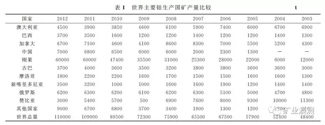 (1)中國鈷礦資源緊缺。盡管中國資源量達8萬噸,但遠遠少于剛果、澳大利亞等國家。同時由于中國貧礦多、富礦少;共生、伴生礦多、單獨的鈷礦床少等原因,加上還有不少暫時不能利用的資源,所以總的來說中國是一個鈷礦資源嚴重缺乏的國家。