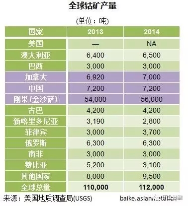 中國鈷產量呈現出良好的快速增長勢態(tài),到2012年產量達到7,000噸,已成為世界第二大鈷礦生產國。