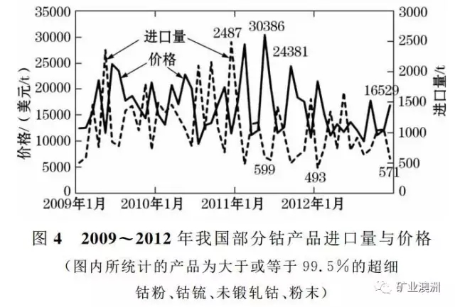 根據中國有色金屬工業(yè)協(xié)會鈷業(yè)分會的統(tǒng)計資料,對近4年主要鈷產品進出口量與價格進行了對比與分析。一方面顯示中國鈷礦生產力的提升緩解了進口壓力,減少了國際貿易風險,另一方面反映出中國小型鈷生產企業(yè)的惡性競爭不利于鈷產業(yè)的健康發(fā)展。
