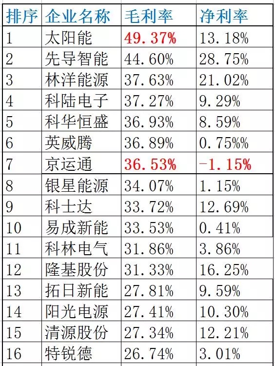 光頭君發(fā)現(xiàn),毛利率和凈利率最高的是先導智能;科士達的表現(xiàn)也非常搶眼;京運通的毛利率超過36%,但凈利率卻為—1.15%,與去年相比略差強人意。此外,協(xié)鑫集成、航天機電、中利集團、向日葵的凈利率為“負”,需要在下半年再接再厲。