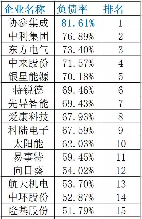 資產(chǎn)負債率排行